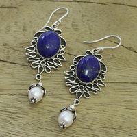 Lapis Lazuli and Pearl Earrings in Sterling Silver 'Ethereal' Item ID: 2669924089