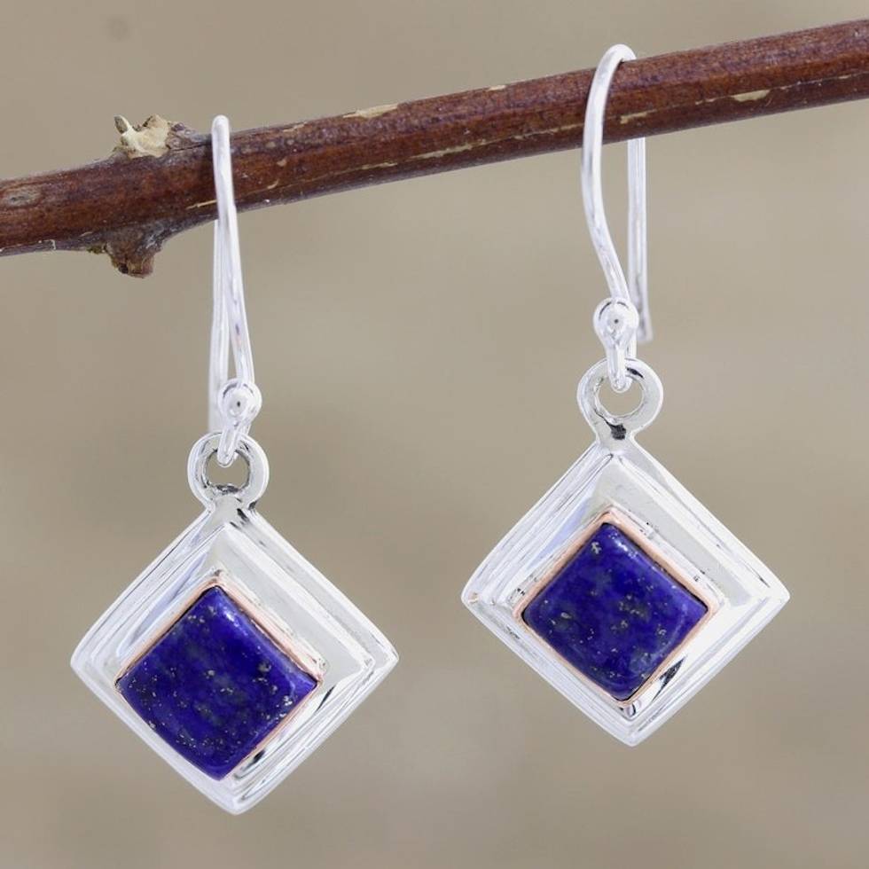 These lapis earrings are simple, substantial, and a nice size and weight. The silver framing is beautifully done. I could wish the "gold flecks" were as prominent as in the photo, but on mine they were not. They are still beautiful and very well crafted.