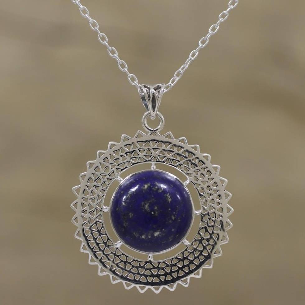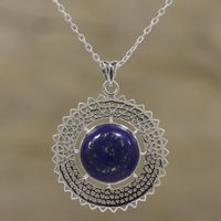 Lapis Lazuli and Sterling Silver Necklace from India 'Triangular Sun Rays' Item ID: 2671790416