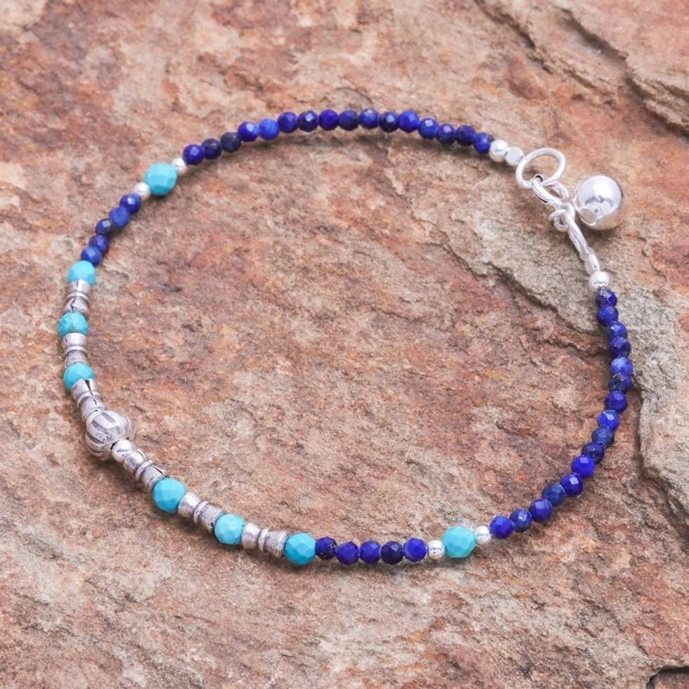 Lapis Lazuli and Sterling Silver Pendant Bracelet 'Silver Storm in Blue' Item ID: 2669925965