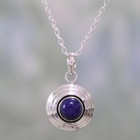 Lapis Lazuli and Sterling Silver Pendant Necklace from India 'Midnight Disc' Item ID: 2671790916