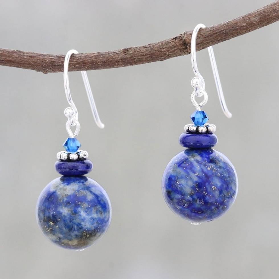 Lapis Lazuli Beaded Dangle Earrings from Thailand 'Global Wonder' Item ID: 2671641353