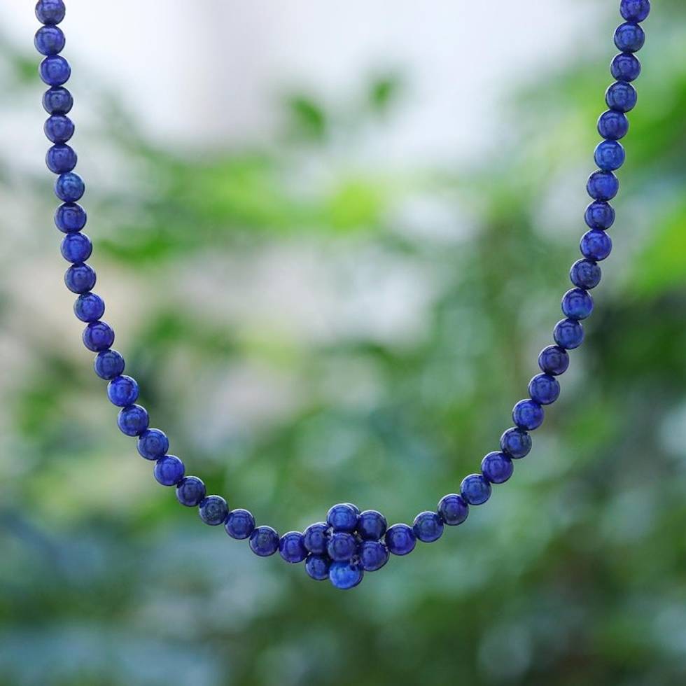 Lapis Lazuli Beaded Pendant Necklace from Thailand 'Blue Grapes' Item ID: 2669926315
