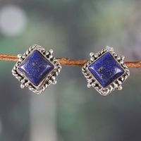 Lapis Lazuli Cabochon and Sterling Silver Button Earrings 'Jewels of Majesty' Item ID: 2671669592