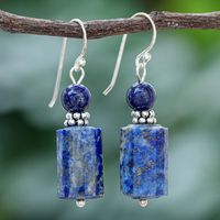 Lapis Lazuli Dangle Earrings from Thailand 'Blue Marvel' Item ID: 2669925772