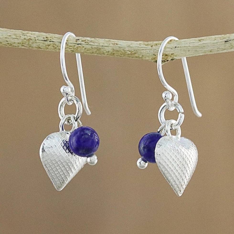Lapis Lazuli Heart Dangle Earrings from Thailand 'Love For Midnight' Item ID: 2671800761