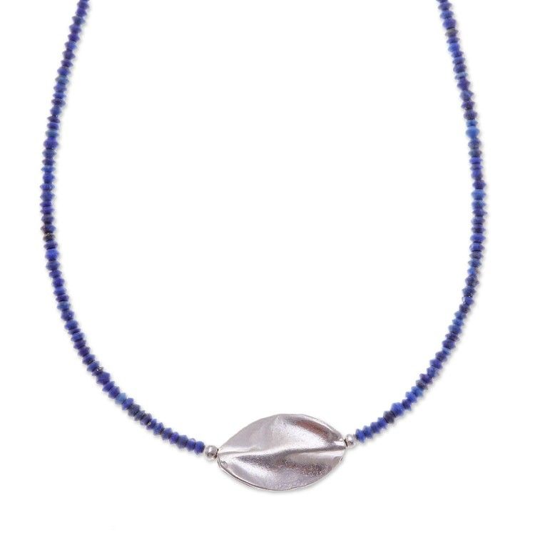 Lapis Lazuli Silver Beaded Pendant Necklace with Leaf Motif 'Leafy Dream' Item ID: 2671796741