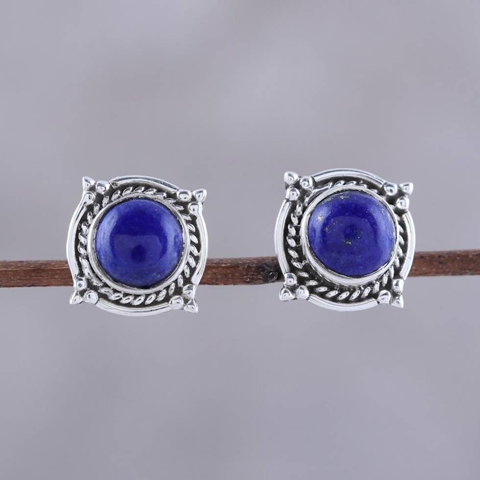 Lapis Lazuli Stud Earrings from India 'Morning Crowns' Item ID: 2669924066