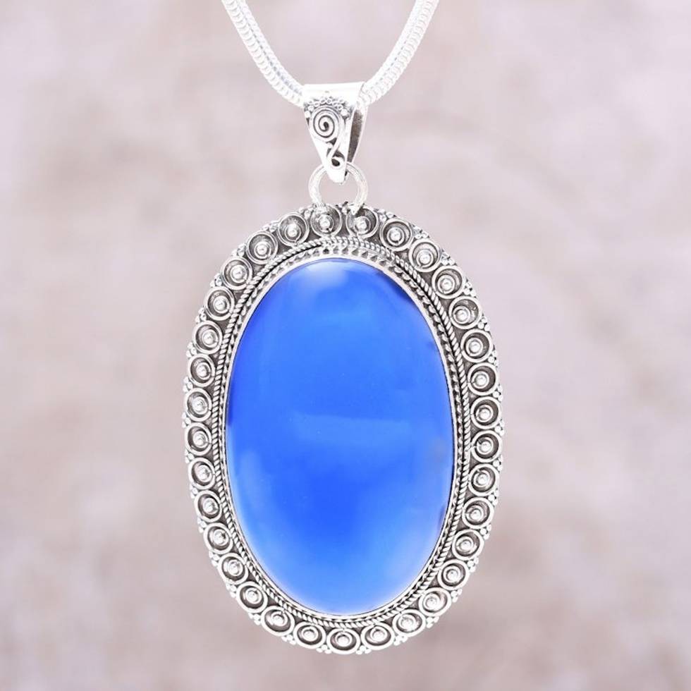 Large Blue Chalcedony and Sterling Silver Pendant Necklace 'Fairest Sky' Item ID: 2671792519