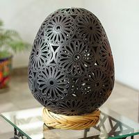 Large Oaxaca Black Pottery Floral Egg Shaped Sculpture 'Floral Egg' Item ID: 2671808858