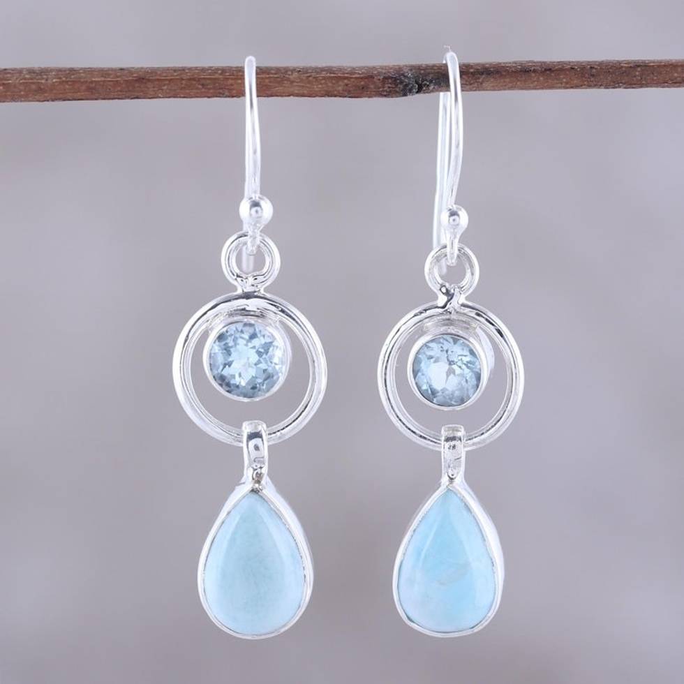 Larimar and Blue Topaz Dangle Earrings from India 'Gleaming Daylight' Item ID: 2669942929
