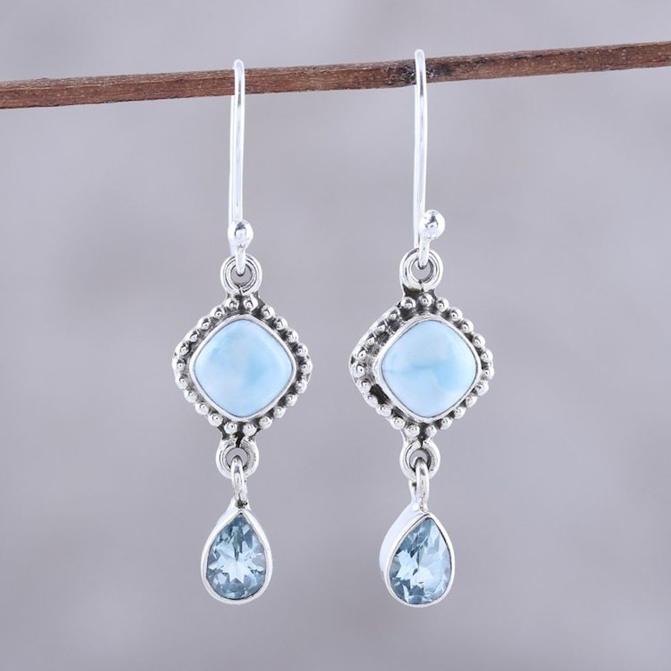 Larimar and Blue Topaz Dangle Earrings from India 'Queen of Diamonds' Item ID: 2671792016