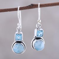Larimar and Blue Topaz Sterling Silver Dangle Earrings 'Glittering Sky' Item ID: 2671620358