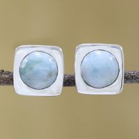 Larimar and Sterling Silver Button Earrings from India 'Encompass' Item ID: 2671790961