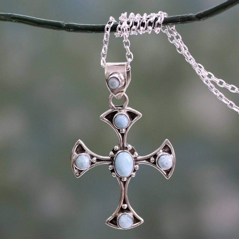 Larimar and Sterling Silver Cross Pendant Necklace 'Sacred Memory' Item ID: 2671793188