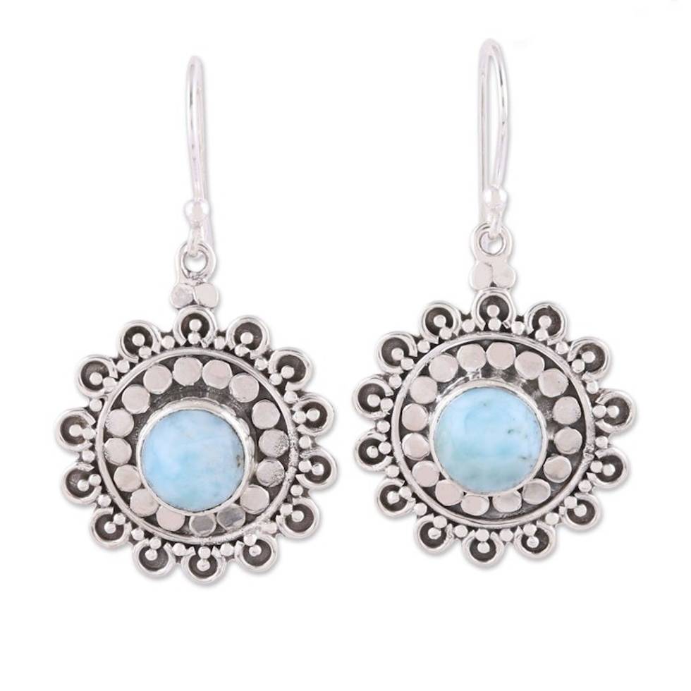 Larimar and Sterling Silver Dangle Earrings from India 'Floral Lake' Item ID: 2671790905