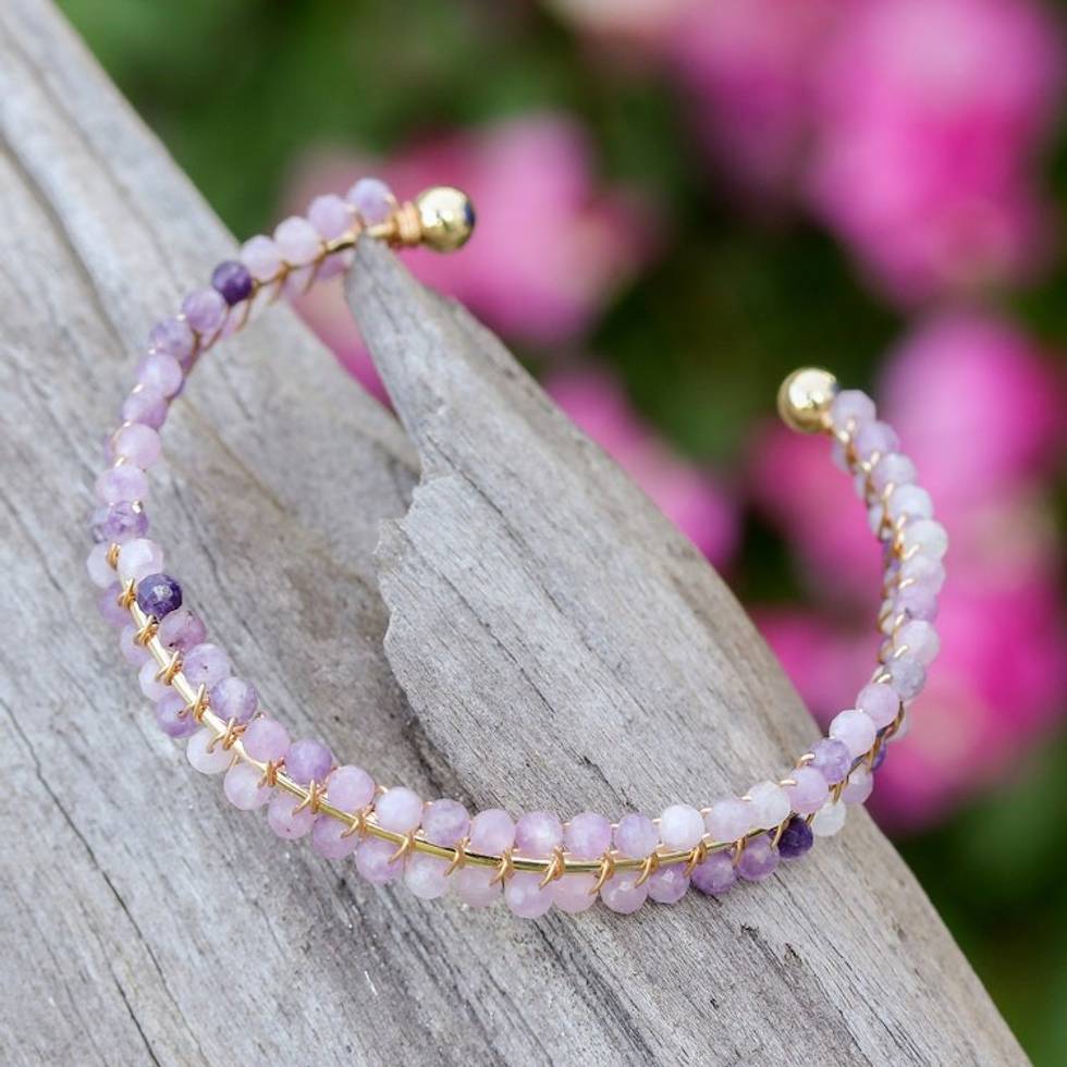 Lavender Amethyst Beaded Cuff Bracelet Handmade in Thailand 'Life of Enchantment' Item ID: 2671796553