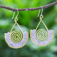 Lavender and Gold Glass Bead Spiral Dangle Earrings 'Spiral Fan in Lavender' Item ID: 2671799857