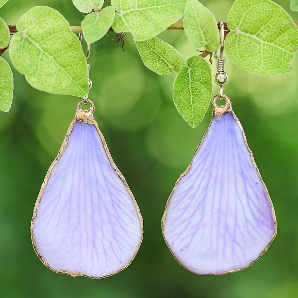 Lavender-Toned Gold-Accented Petal-Shaped Dangle Earrings 'Dreamy Petal' Item ID: 2671796877