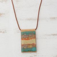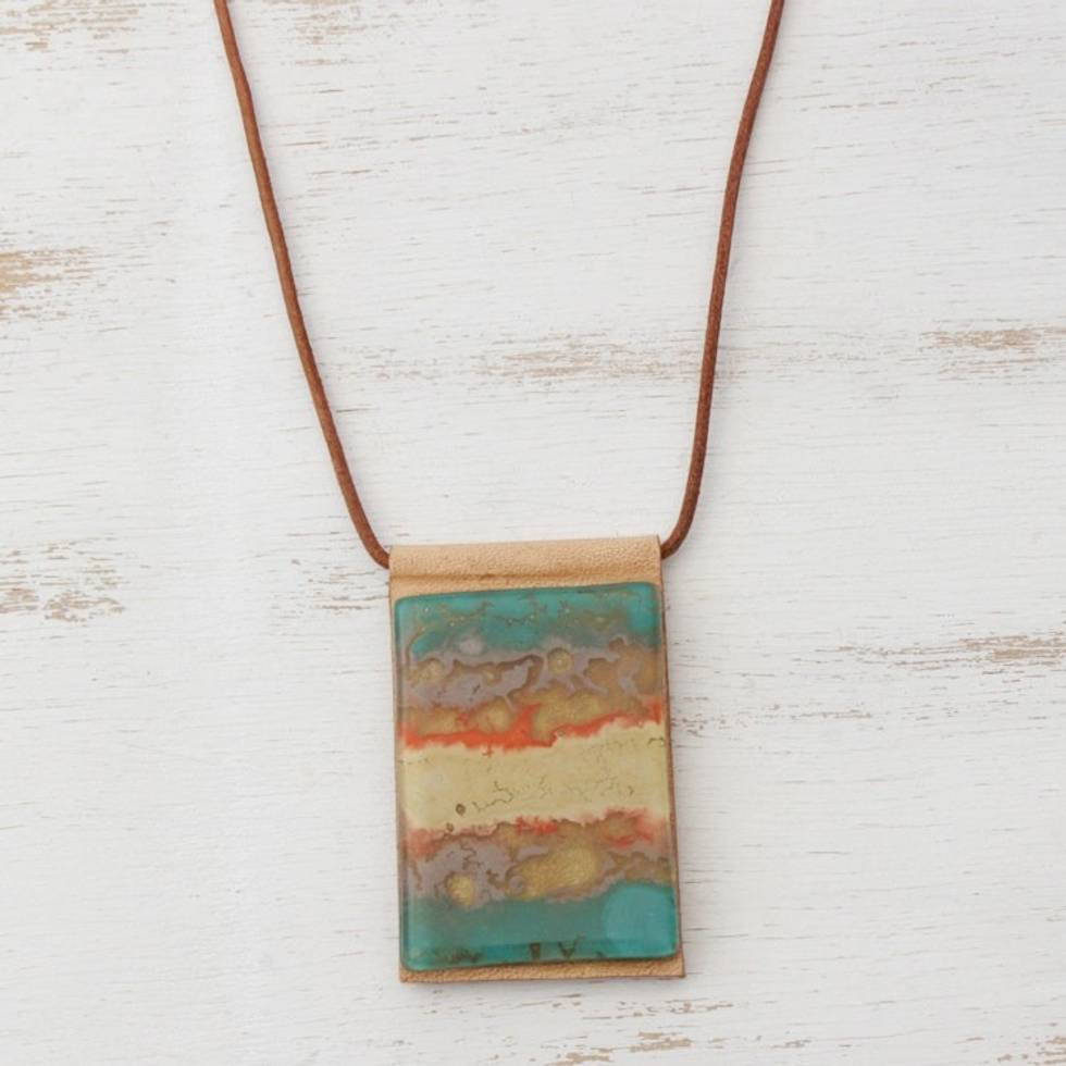 Layered Glass and Leather Pendant Necklace from Brazil 'Seaside' Item ID: 2669935362