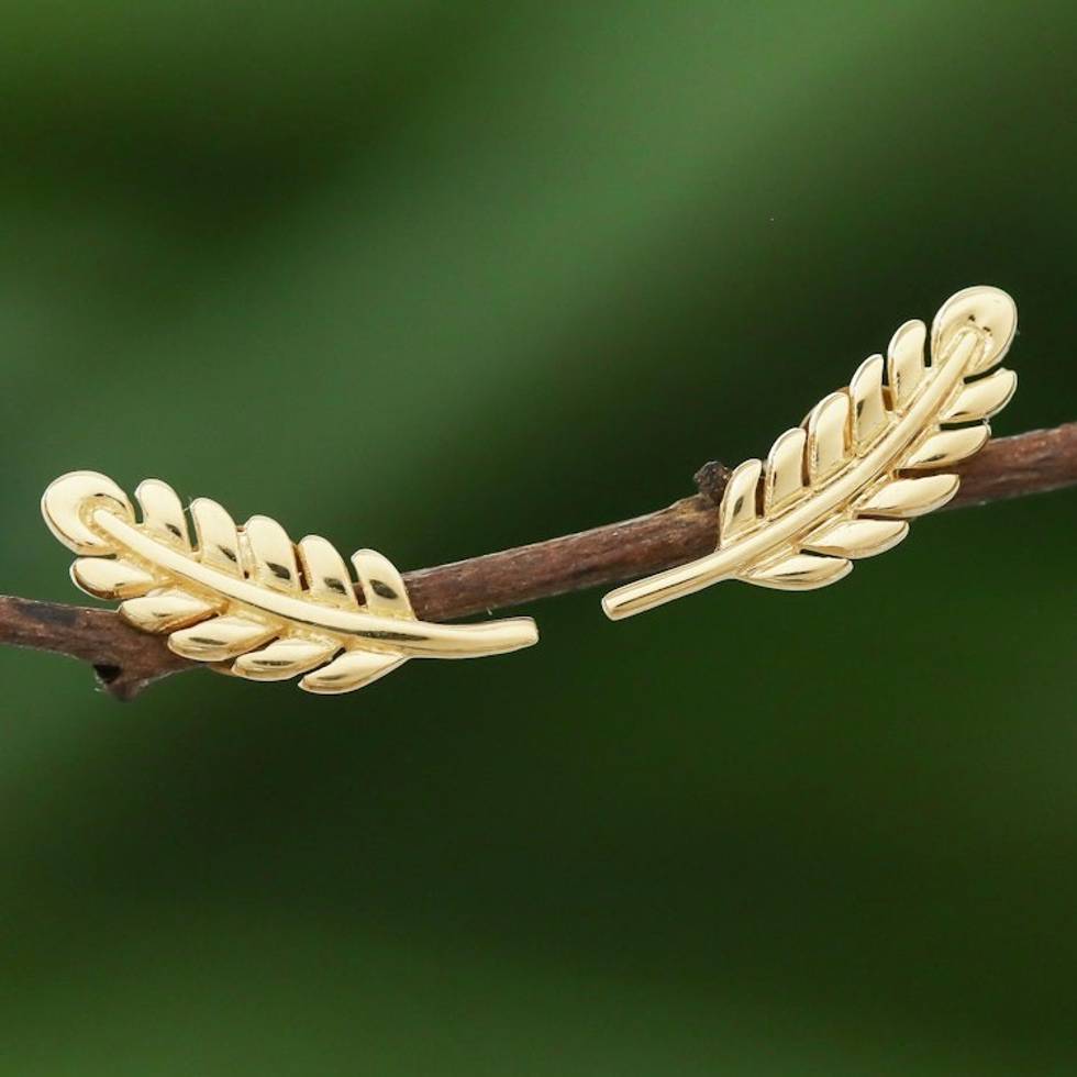 Leaf 18k Gold Plated Sterling Silver Button Earrings 'Adorable Leaves' Item ID: 2669931408