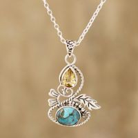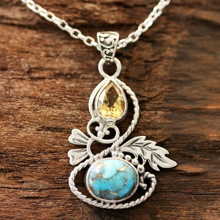 Leaf Motif Citrine and Composite Turquoise Pendant Necklace 'Delightful Garden' Item ID: 2671789589