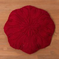 Leaf-Pattern 100 Alpaca Knit Beret in Claret from Peru 'Claret Leaves' Item ID: 2671820091