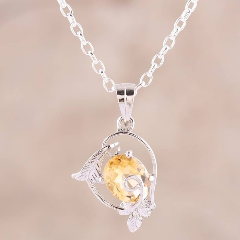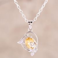 Leaf Pattern Rhodium Plated Citrine Pendant Necklace 'Golden Glimmer' Item ID: 2671792749