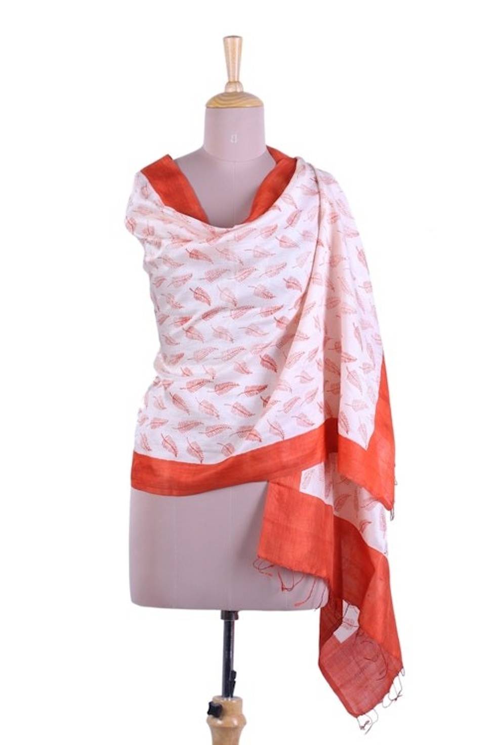 Leaf Print Shawl from India in Hand Woven Silk 'Subtle Leaf' Item ID: 2671790494