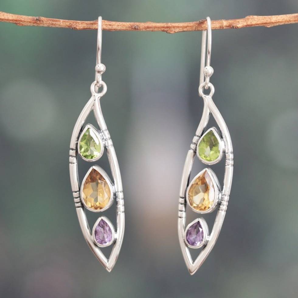 These earrings are nicer than I expected. The blue topaz has more color ! The peridot and amethyst and great too. All in all a lovely pair of earrings that I am proud to wear. Love the different stone shapes. You can count on the wonderful craftmanship in Niru's products.