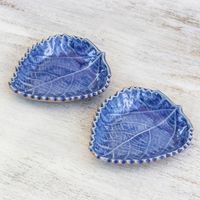 Leaf-Shaped Blue Ceramic Bowls from Thailand Pair 'Leaves of the Forest' Item ID: 2671798360