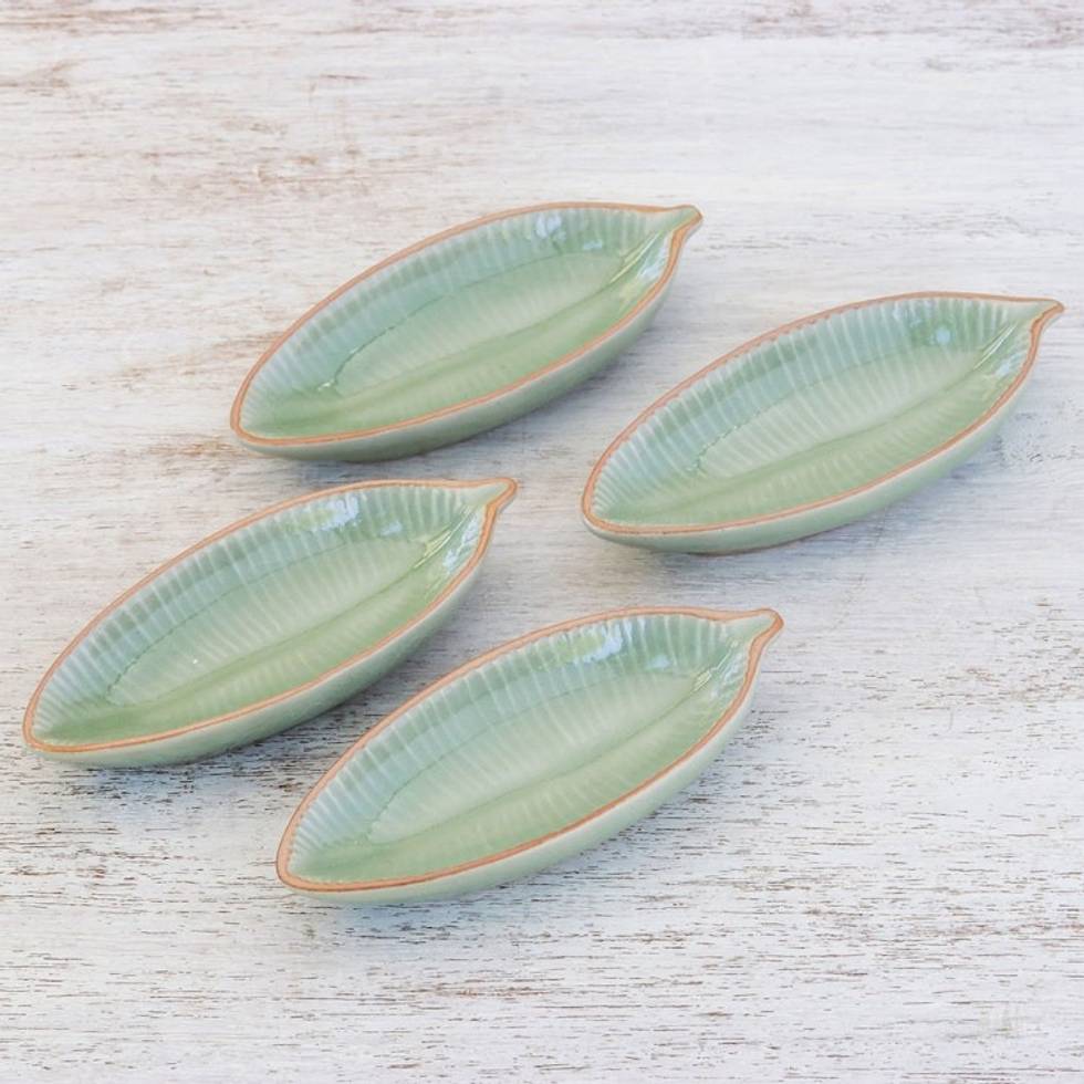Leaf-Shaped Celadon Ceramic Appetizer Bowls Set of 4 'Festive Banana' Item ID: 2671798656