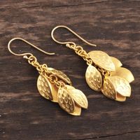 Leaf-Shaped Gold Plated Sterling Silver Dangle Earrings 'Leafy Arrangement' Item ID: 2671789397