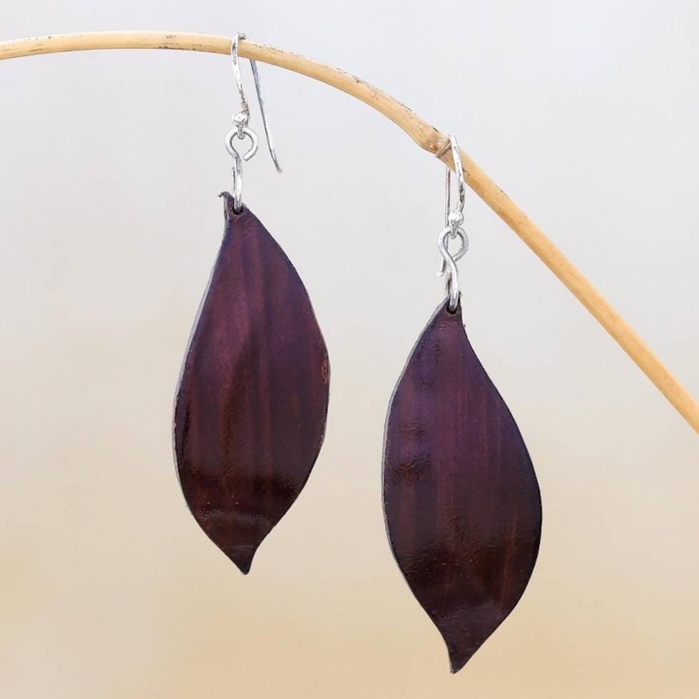Leaf-Shaped Leather Dangle Earrings in Brown from Thailand 'Fanciful Leaves in Brown' Item ID: 2671798808