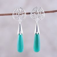 Leaf-Shaped Onyx Dangle Earrings from India 'Forest Style' Item ID: 2671619617