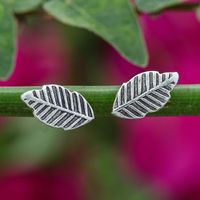 Leaf-Shaped Oxidized Polished Sterling Silver Stud Earrings 'Classic Leaves' Item ID: 2671796689