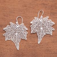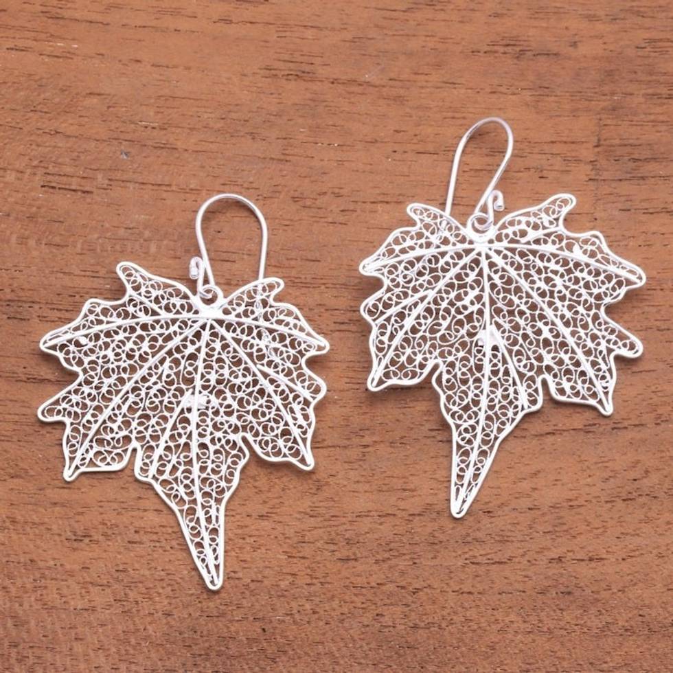 Leaf-Shaped Sterling Silver Filigree Dangle Earrings 'Wonderful Leaves' Item ID: 2671744838