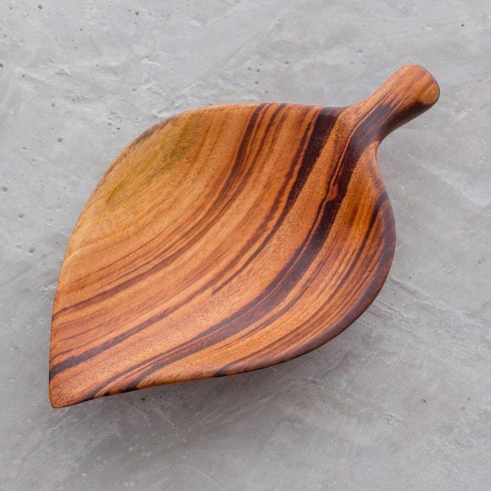 Leaf-Shaped Wood Appetizer Bowl from Guatemala 'Jungle Delicacies' Item ID: 2669934762
