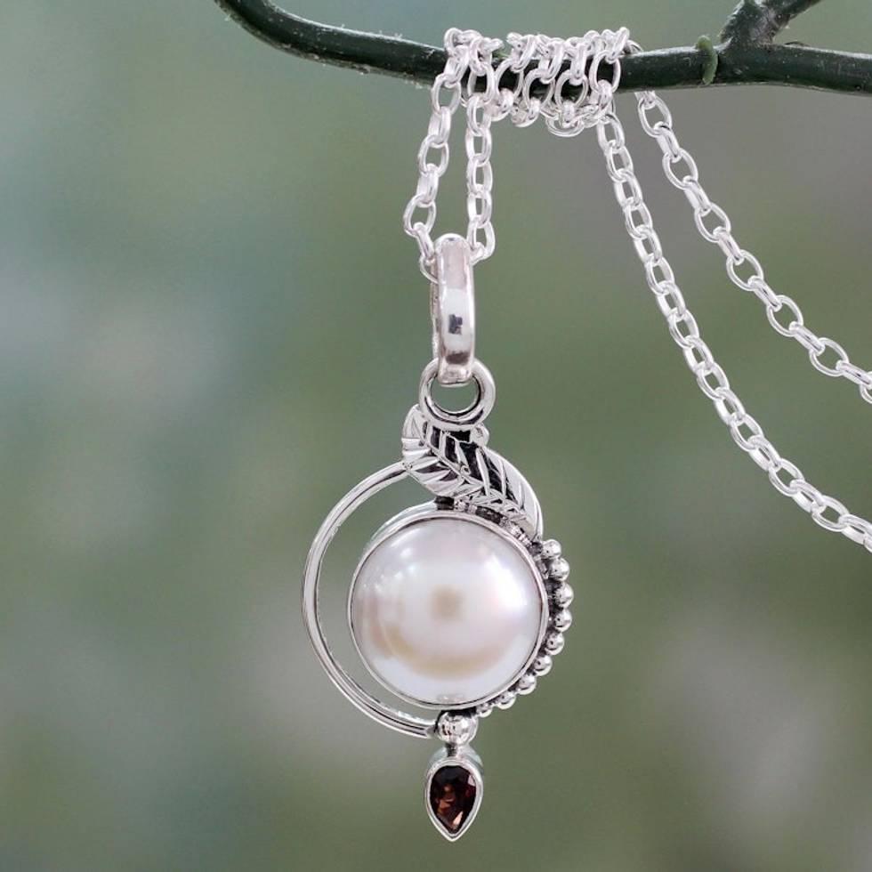 This a beatifigul and sell made versatil necklace. Garnet is my bith stone and you can go wrong with a pearl.Very elegant, soft and feminine.Unique design with the leaf this was what caught my attention