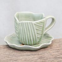 Leaf-Themed Celadon Ceramic Teacup and Saucer from Thailand 'Tea Leaf' Item ID: 2671799148