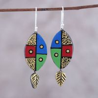 Leaf-Themed Ceramic Dangle Earrings Crafted in India 'Blissful Colors' Item ID: 2671792445