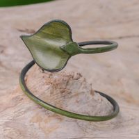 Leaf-Themed Leather Wrap Bracelet in Olive from Thailand 'Heart Leaf in Olive' Item ID: 2671799128