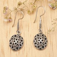 Leaf-Themed Oval Sterling Silver Dangle Earrings from Bali 'Evergreen Splendor' Item ID: 2671765610