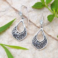 Leaf-Themed Silver Dangle Earrings with Blue Topaz Gemstones 'Garden of Eternity' Item ID: 2671614467