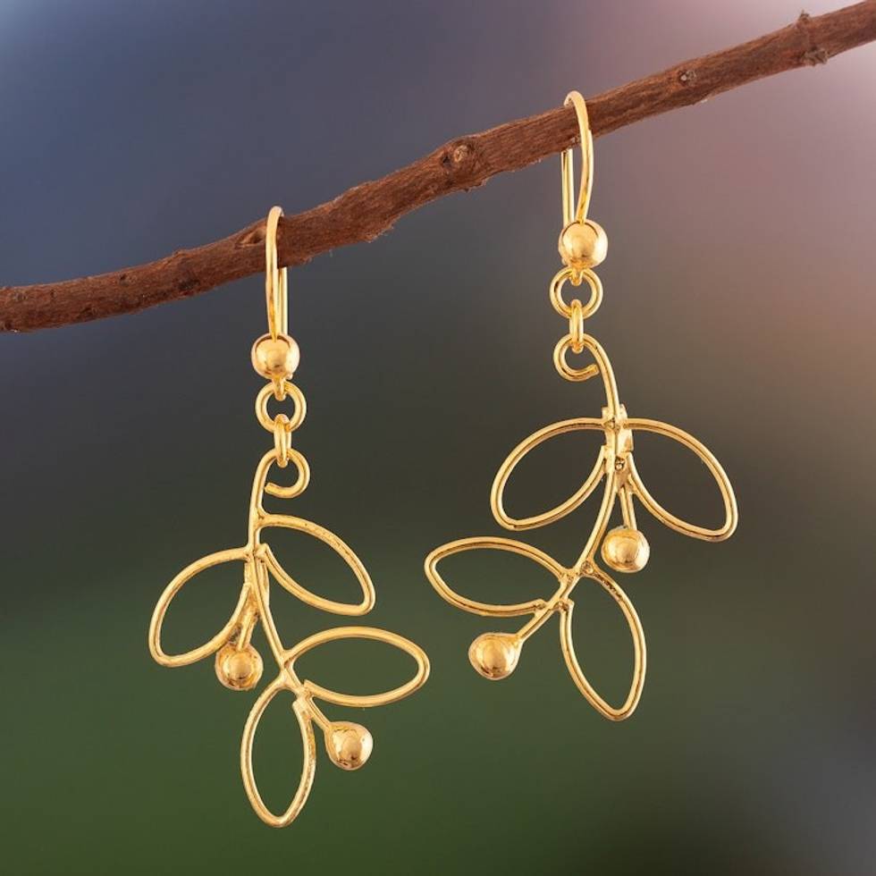 Leafy 18k Gold Plated Sterling Silver Dangle Earrings 'Airy Leaves' Item ID: 2671691633