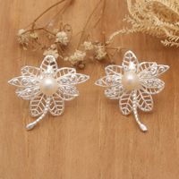 Leafy and Dragonfly-Themed Cultured Pearl Button Earrings 'Celestial Dragonfly' Item ID: 2671764849
