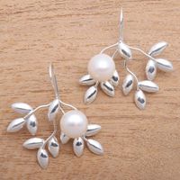 Leafy Cultured Pearl Drop Earrings from Bali 'Ripe' Item ID: 2671744739