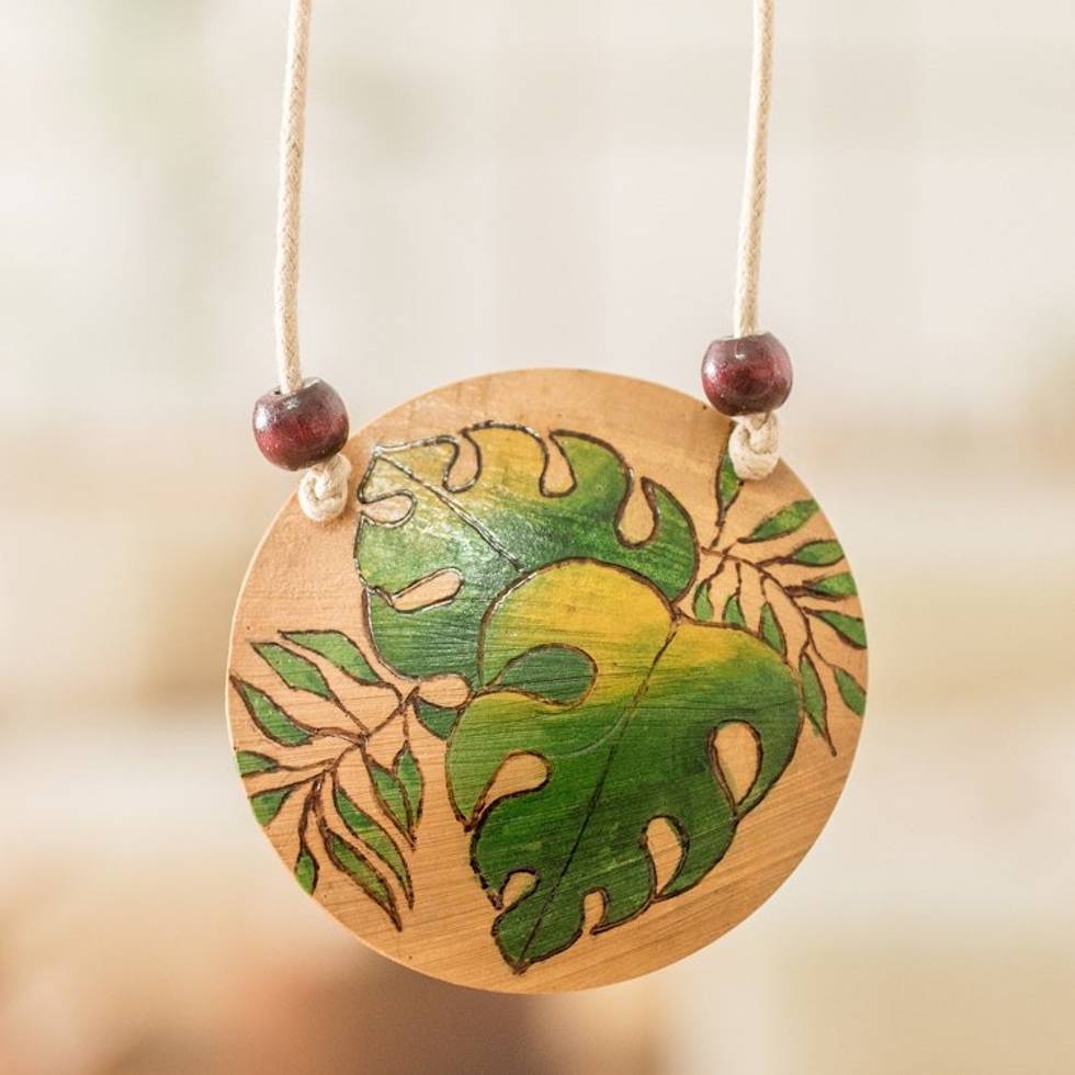 Leafy Hand-Painted Calabash Gourd Pendant Necklace 'Leafy Spirit' Item ID: 2671770910
