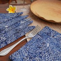 Leafy-Patterned 6-Piece Midnight Blue 100 Cotton Napkin Set 'Midnight Banquet' Item ID: 2671667939