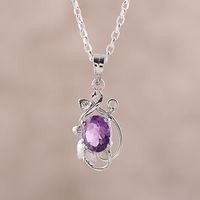Leafy Rhodium Plated Amethyst Pendant Necklace from India 'Lilac Dazzle' Item ID: 2671792808